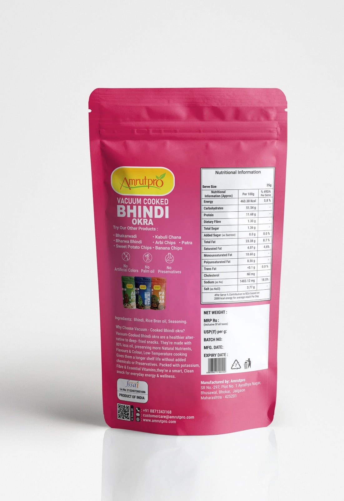 Vacuum-cooked bhindi offers a healthier alternative to traditional deep-fried snacks by using 95% less oil and goodness of dry fruits, which helps retain natural nutrients, flavors, and vibrant color. The low-temperature vacuum cooking process extends shelf life naturally, without the need for preservatives or chemicals. Rich in potassium, fiber, and essential vitamins, this snack supports daily energy and overall wellness, making it a smart choice for health-conscious consumers.